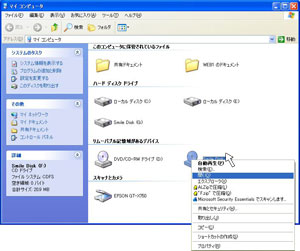 “SmileDisk”を選択し、マウスの右クリックで“開く(O)を選び、デバイスを開いてください”。